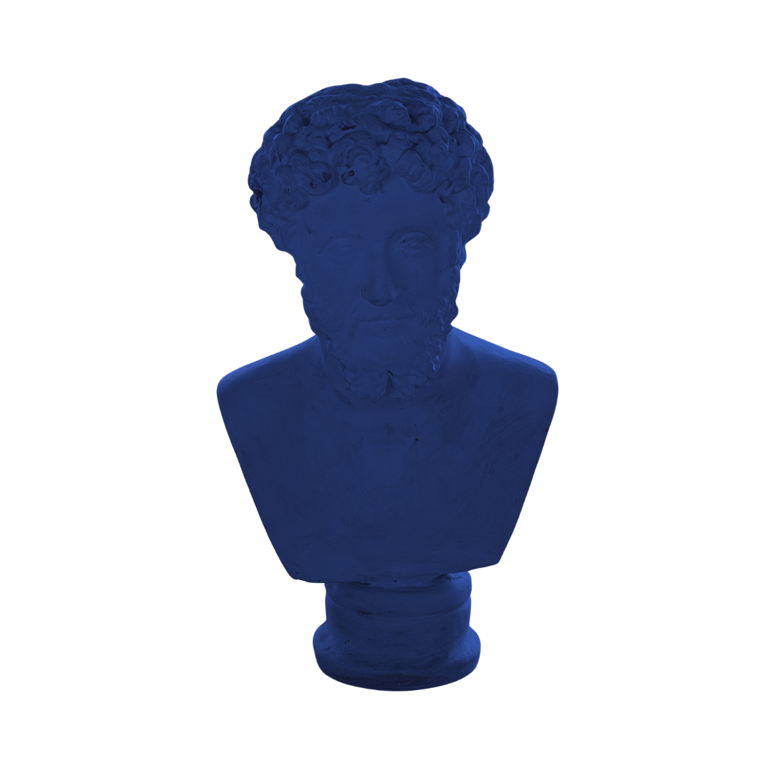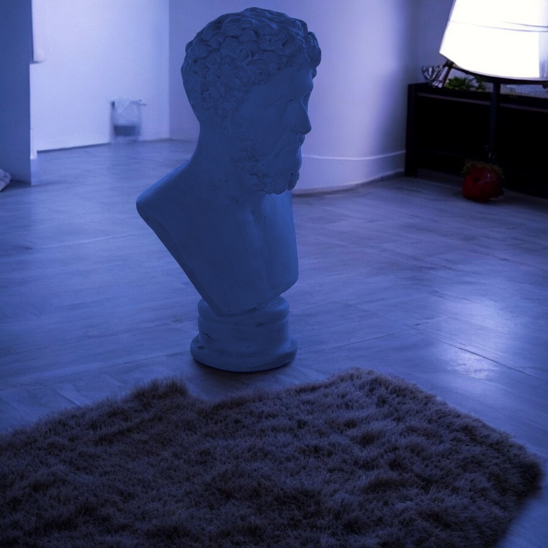 Stoacı felsefesiyle bilinen Marcus Aurelius’un portre heykelleri, genellikle içsel bir huzur, ölçülü bir ifadeye sahip yüz hatları ve belirgin sakal dokusuyla tanımlanır. Bu modern yorumda da aynı ifadeyi güçlendiren yumuşak geçişli yüzeyler, sadeleştirilmiş form dili ve heykelin bütününe yayılan dingin duruş öne çıkar.